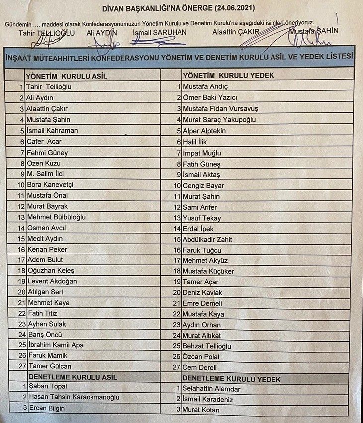 24 Haziran da gerçekleşen İMKON(İnşaat Müteahhitleri Konfederasyonu) olağan genel kurulu yapıldı kurulda tek isimle seçime gidildi Tellioğlu tekrar güven tazeledi.