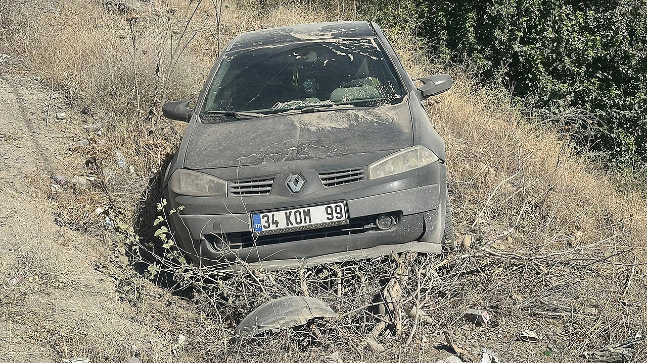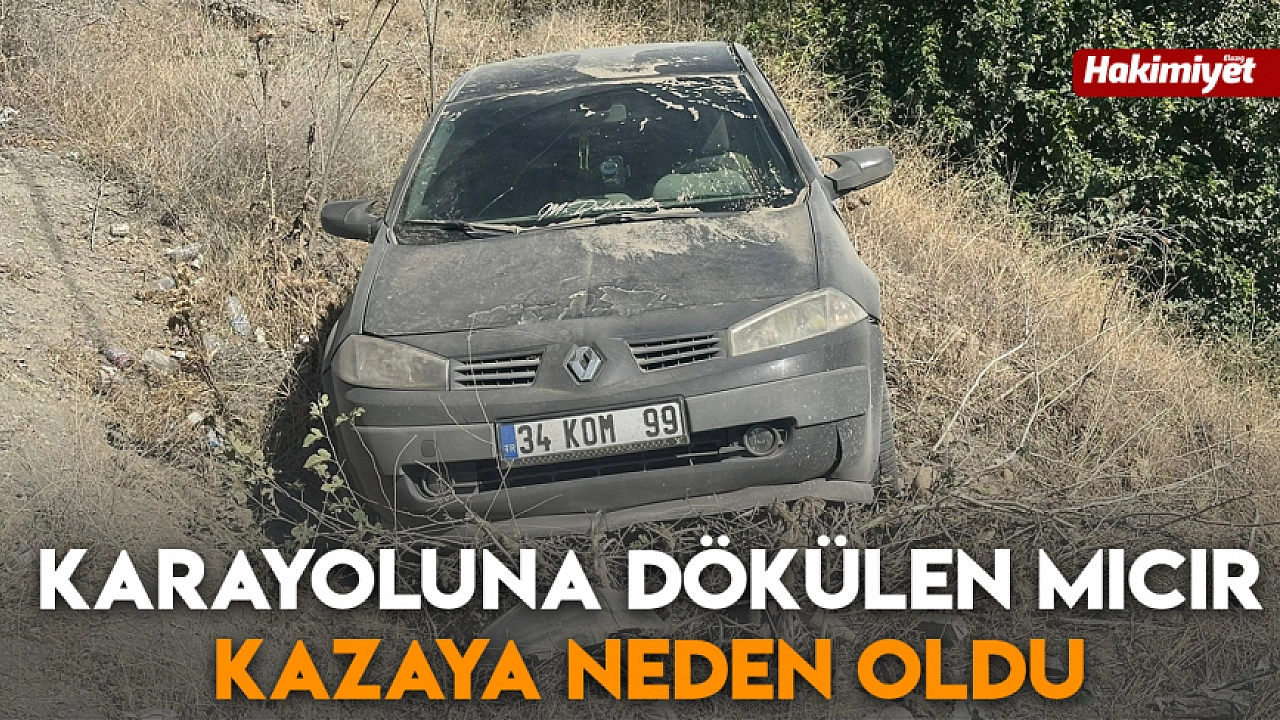 Adıyaman'da, karayoluna dökülen mıcırdan dolayı kontrolden çıkan otomobil şarampole girdi.