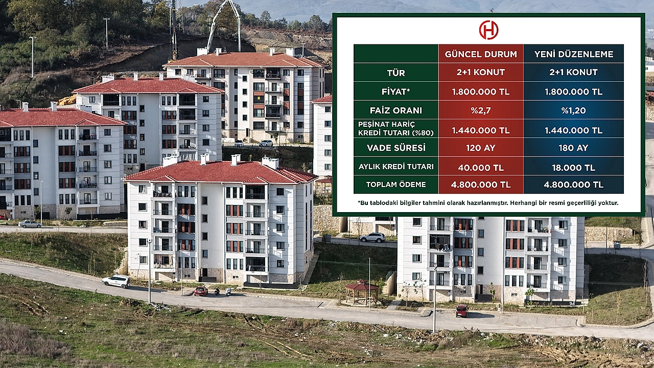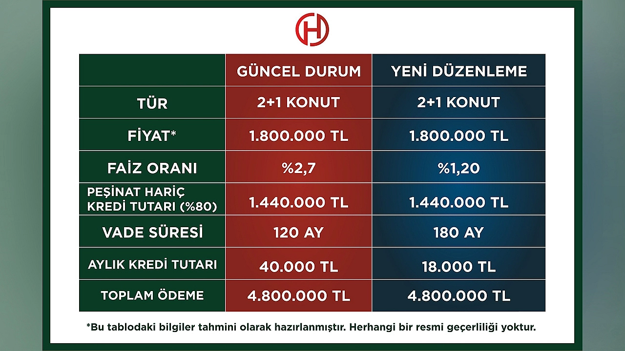 Planlanan yeni kredi modeli (%1,20 faiz – 180 ay vade) hayata geçirilirse: