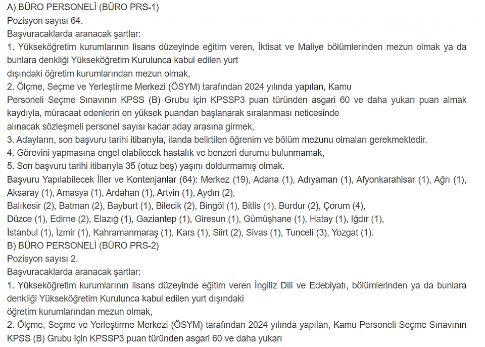Büro Personeli için 2024 KPSS (B) grubu KPSSP93 puan türünden en az 60 puan,