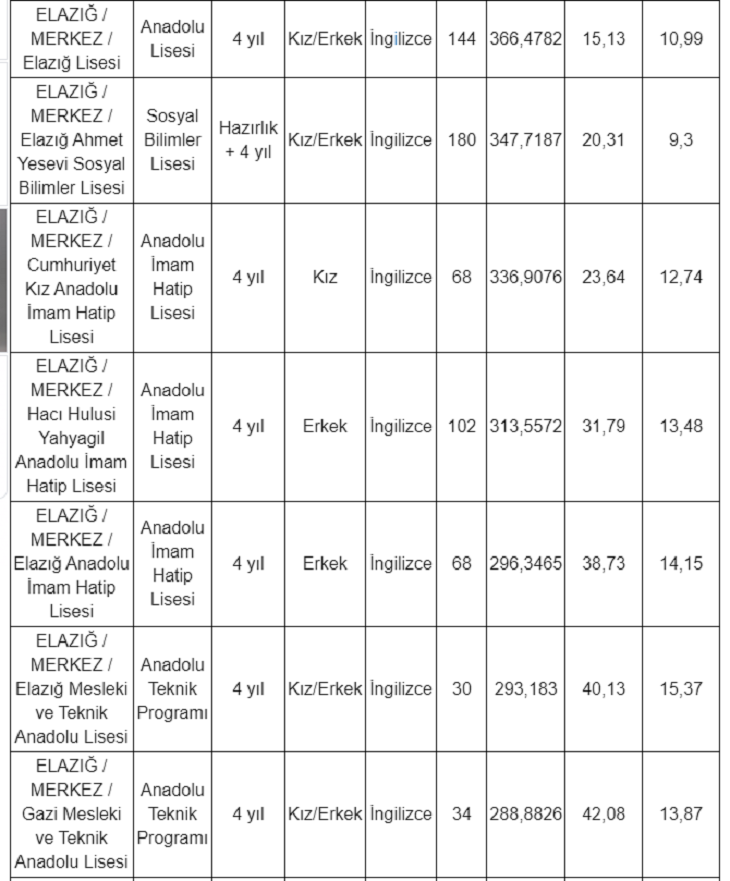 10 AĞUSTOS 2020 tarihinde ilan edilen merkezi sınav ile öğrenci alan orta öğretim kurumları yerleştirme sonuçlarına göre tercihe son yerleşen öğrencinin puanıdır. Yüzdelik Dilimler ve Taban Puanları MEB' den alınmıştır: