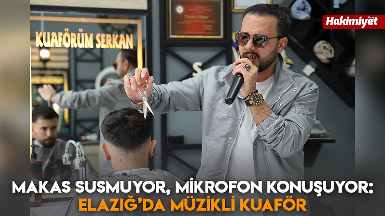 Elazığ'da 28 yıldır kuaförlük yapan Serkan Yılmaz, tıraş sırasında mikrofonla şarkılar söyleyerek müşterilerine hem hizmet hem eğlence sunuyor. Mini konser havasında geçen tıraş keyfi, vatandaşlardan yoğun ilgi görüyor.