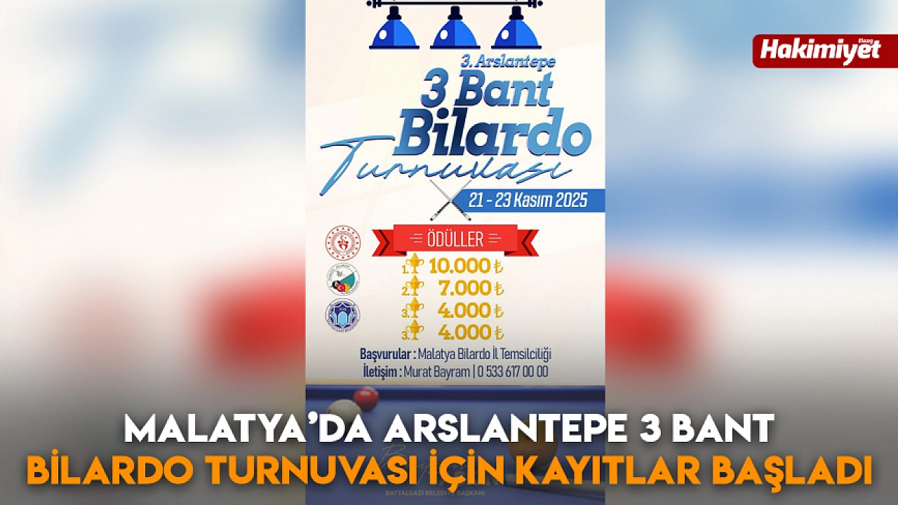 Bu yıl üçüncüsü yapılacak olan Battalgazi Belediyesi Arslantepe 3 Bant Bilardo Turnuvası için başvurular açıldı. Battalgazi Belediyesi Gençlik ve Spor Hizmetleri Müdürlüğü tarafından organize edilecek turnuva, bilardo severleri aynı çatı altında buluşturacak.