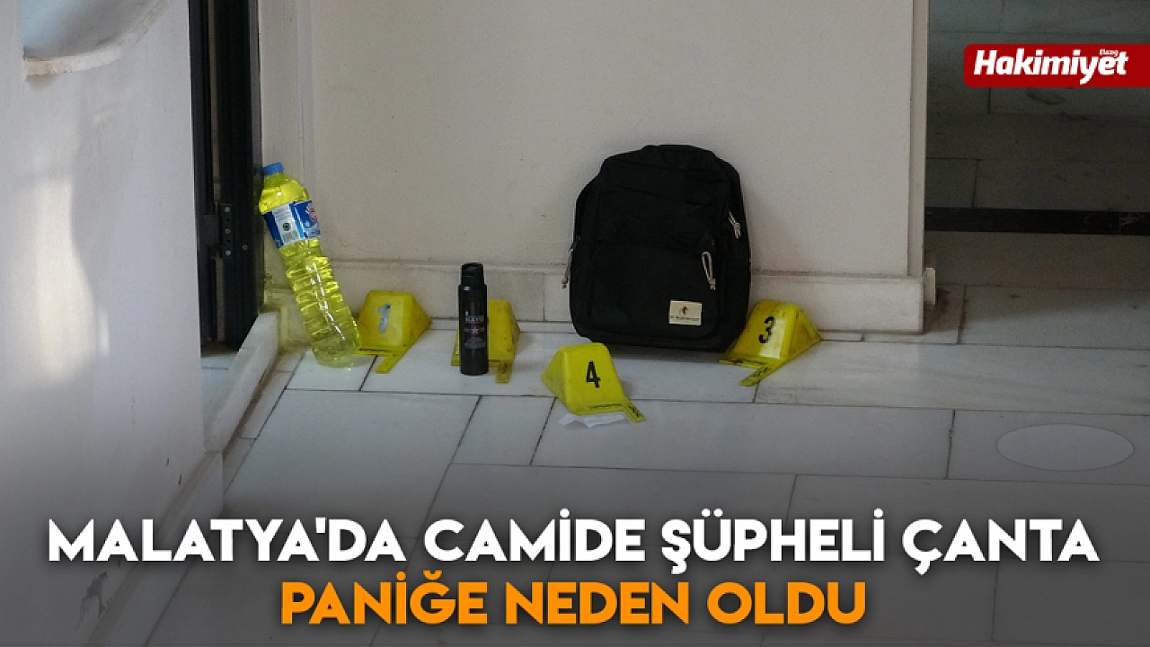 Battalgazi ilçesinde bulunan bir caminin tuvaletinde içerisinde benzin, biber gazı ve bir adres notu bulunan şüpheli çanta paniğe neden oldu.