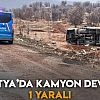 Edinilen bilgiye göre, Adıyaman istikametine seyir halinde olan R.K. (25) yönetimindeki 33 AUM 009 plakalı kamyon, Doğanşehir Eskiköy Mahallesi mevkiinde kontrolden çıkarak önce park halindeki 06 DVY 536 plakalı hafif ticari araca çarptı, ardından bariyerlere çarpıp devrildi.