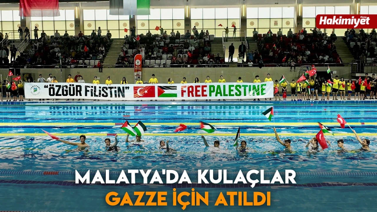 Yeşilyurt Belediyesi'nin ev sahipliğinde Gençlik ve Spor İl Müdürlüğüne ait Kapalı Yüzme Havuzu'nda gerçekleşen "Gazze İçin Umuda Kulaç At"