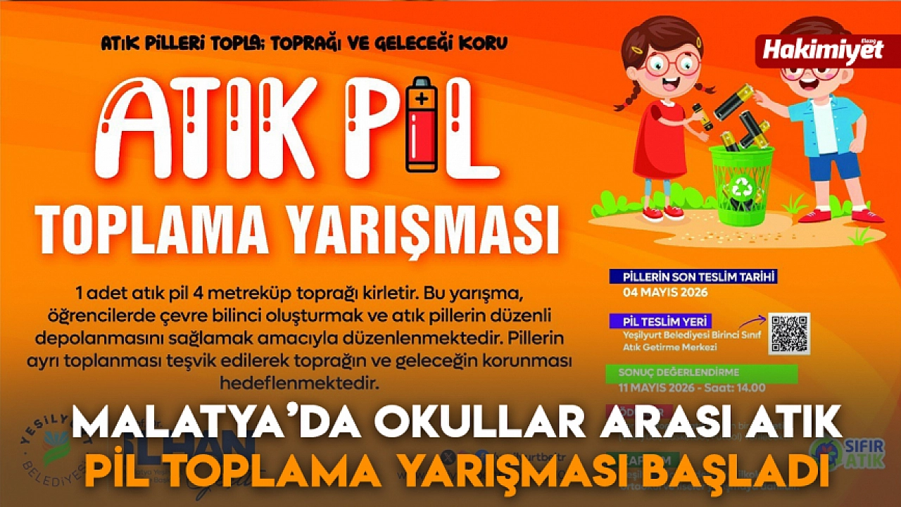Yeşilyurt Belediyesi, çevre bilincini artırmak ve öğrencilere geri dönüşüm alışkanlığı kazandırmak amacıyla 'Okullar Arası Atık Pil Toplama Yarışması' başlattı. Yarışmaya ilçedeki tüm ilkokul, ortaokul ve liseler katılabilecek.