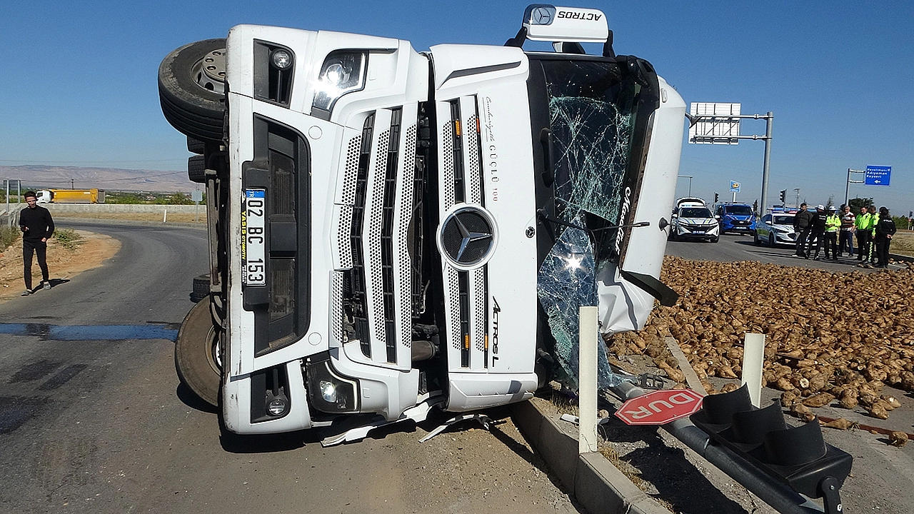Malatya'da sürücünün kontrolünden çıkan pancar yüklü tır devrildi. Tonlarca pancarın yola savrulduğu kazada 1 kişi yaralandı.