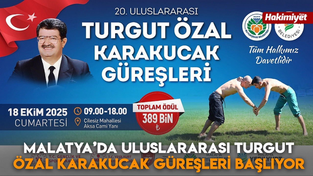 Malatya Büyükşehir Belediyesi ile Yeşilyurt Belediyesinin ortak organizasyonuyla düzenlenecek 20. Uluslararası Turgut Özal Karakucak Güreşleri için tüm hazırlıklar tamamlandı. Geleneksel hale gelen organizasyon, 18 Ekim Cumartesi günü saat 09.00-18.00 arasında Çilesiz Aksa Camii'nin yanındaki alanda gerçekleştirilecek.