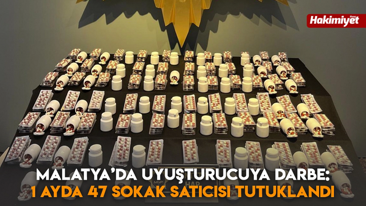 Malatya İl Emniyet Müdürlüğü Narkotik Suçlarla Mücadele Şubesi ekipleri, 1-31 Ekim tarihleri arasında sokak satıcılarının tespiti amacıyla hem teknik hem de fiziki takip içeren operasyonlar düzenledi. Bu operasyonlarda toplam 42 bin 577 adet sentetik ecza hap, 14 kilo 610 gram esrar, 1 kilo 344 gram metamfetamin, 281 gram sentetik kannabinoid, 20 gram kokain, 8 gram skunk, 5 adet ecstasy, 8 hassas terazi ve 3 adet ruhsatsız tabanca ele geçirildi.