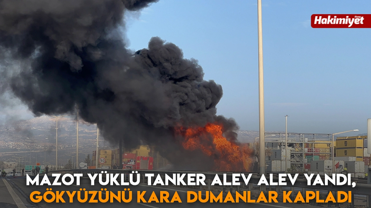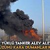 Mazot yüklü tanker alev alev yandı, gökyüzünü kara dumanlar kapladı