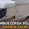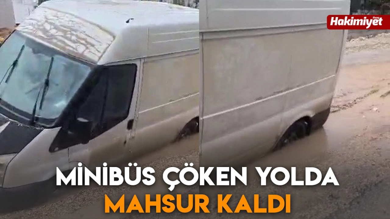 Adıyaman'da, etkili olan yağışların ardından çöken yolda oluşan altyapı çukuruna bir minibüs saplanarak mahsur kaldı.