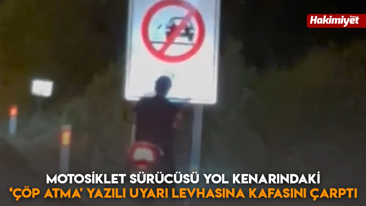 - Motosiklet sürücüsü yol kenarındaki 'çöp atma' yazılı uyarı levhasına kafasını çarptı
