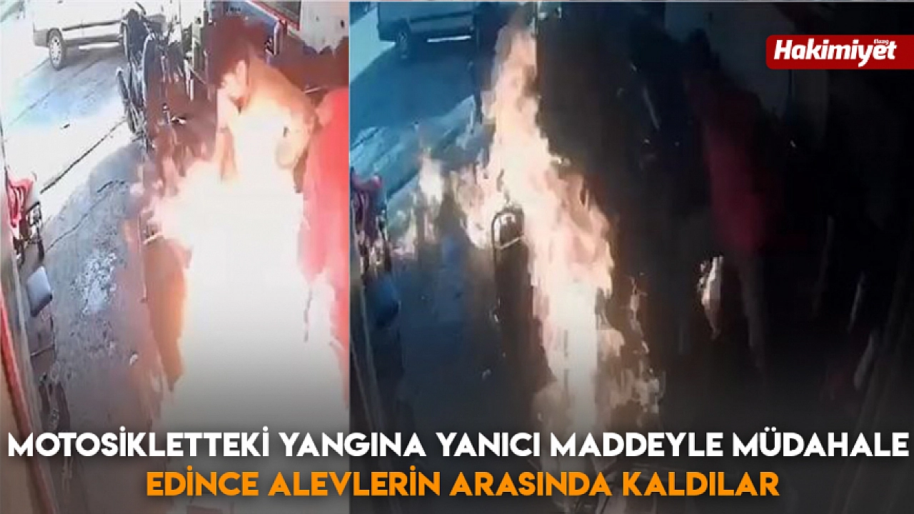 Olay, Sanayi sitesindeki bir tamirhanede meydana geldi. Edinilen bilgiye göre, bozulan motosiklet tamir için bir iş yerine götürüldü. Burada arızanın nedenini bulmak isteyen 2 kişi, elektrik kablolarını kontrol ettiği sırada motosiklet alev aldı. Şahıslardan biri yangını söndürmek için şişenin ağzını açarak yanıcı maddeyi alevin üzerine serpti. Yanıcı maddenin bir anda parlamasıyla birlikte alevlerin arasında kalan 2 kişi koşarak dışarı kaçtı. Şahıslardan biri yine alevi söndürmek için battaniye attı fakat o da tutuşarak yanmaya başladı. Diğer esnafların yangın tüpü ile müdahale ettiği alevler kontrol altına alınarak söndürüldü. O anlar güvenlik kameralarına saniye saniye yansırken motosiklette ve iş yerinde maddi hasar meydana geldi.
