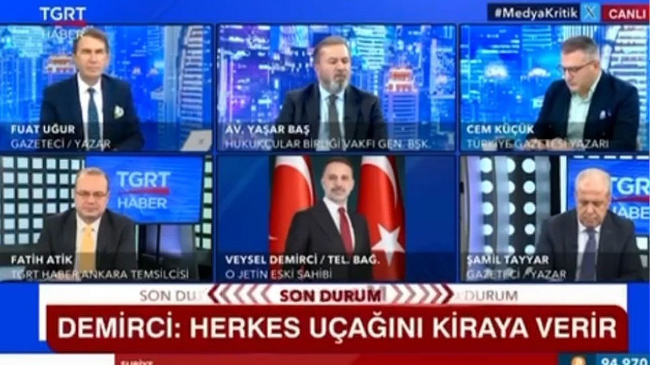 Tartışmaların büyümesi üzerine Veysel Demirci, TGRT Haber canlı yayınına katılarak iddialara yanıt verdi. Demirci, jetle ilgili gündeme getirilen iddialardan yayınlar aracılığıyla haberdar olduğunu belirtti. Uçağın yalnızca geçmişte sahibi olduğunu ifade eden Demirci, iddialara konu edilen uçuşlar, organizasyonlar ve kişilerle hiçbir ilgisinin bulunmadığını söyledi.