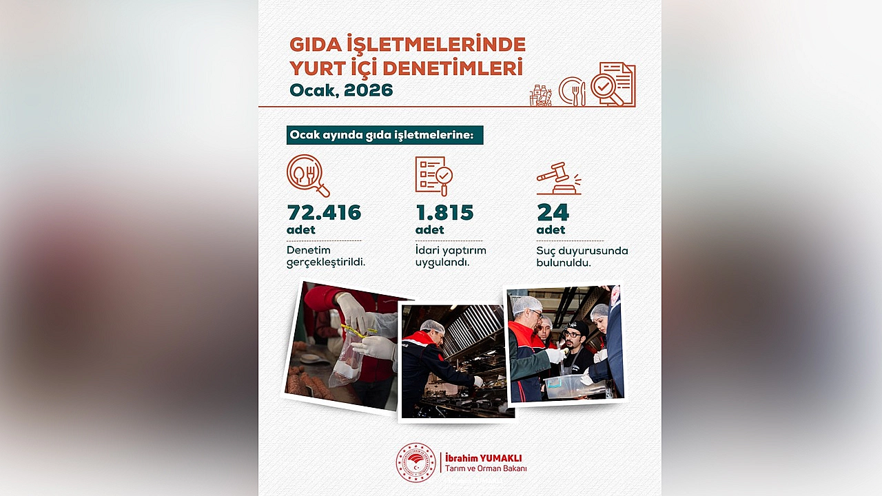 Tarım ve Orman Bakanı İbrahim Yumaklı, 1–31 Ocak tarihleri arasında Türkiye genelinde gerçekleştirilen gıda denetimlerine ilişkin verileri paylaştı. Buna göre, ocak ayında 72 bin 416 gıda denetimi yapıldı.
