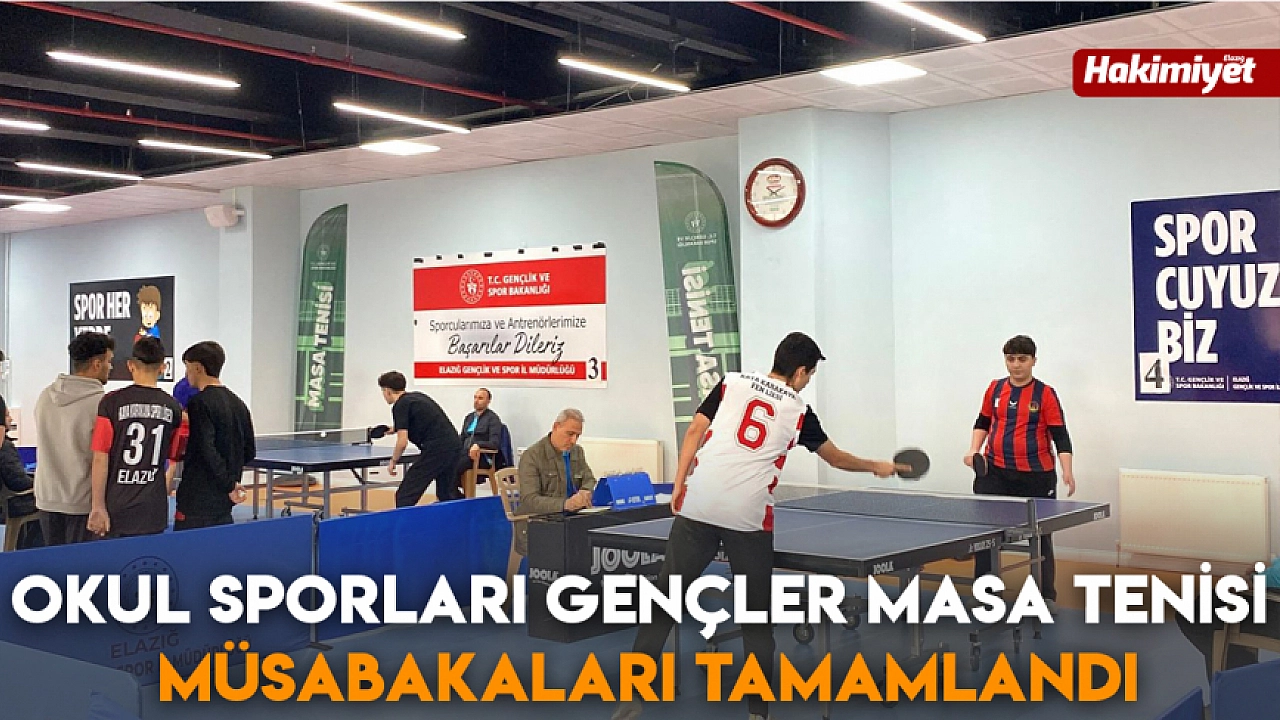 Gençlik ve Spor Bakanlığı koordinesinde düzenlenen Okul Sporları Gençler Masa Tenisi İl Birinciliği Müsabakaları, 22-26 Aralık tarihleri arasında Elazığ'da başarıyla gerçekleştirildi. Atatürk Stadyumu Masa Tenisi Salonu'nda düzenlenen organizasyona toplam 16 okuldan 76 sporcu katılım sağladı.