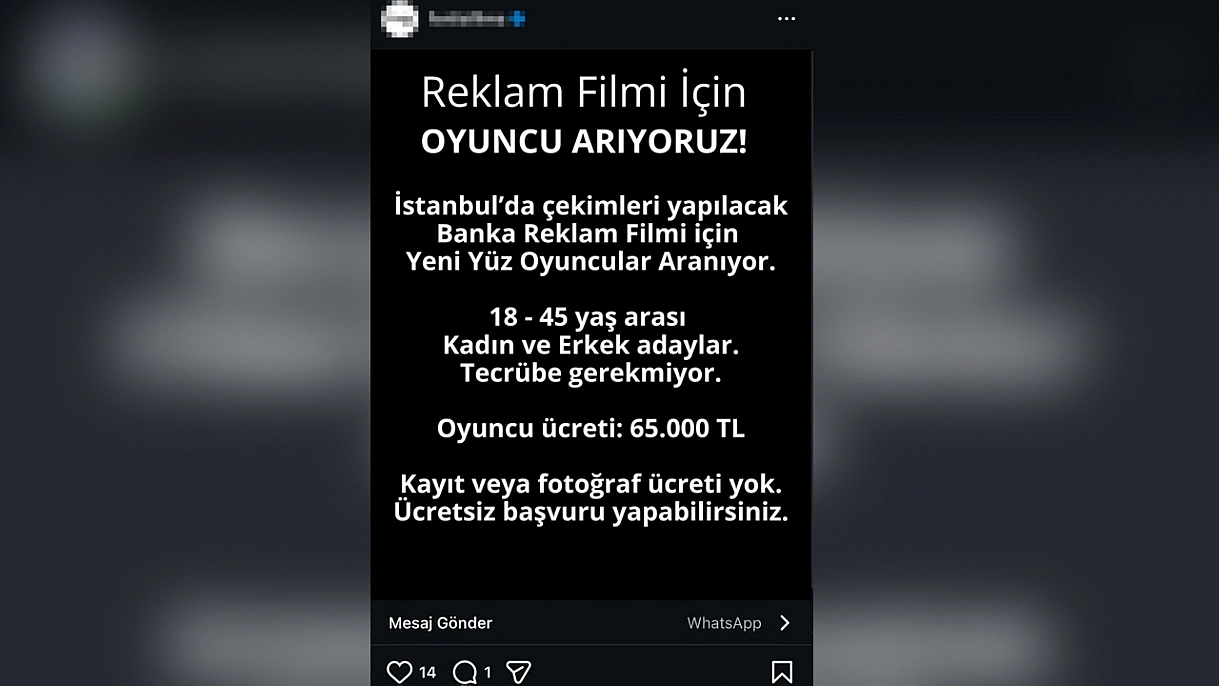 Sosyal medyada 'oyuncu aranıyor' ilanıyla tuzağa düşürülen onlarca gençten eğitim ücreti adı altında para alındığı, okuma fırsatı verilmeden sözleşme ve senet imzalatıldığı öne sürüldü.