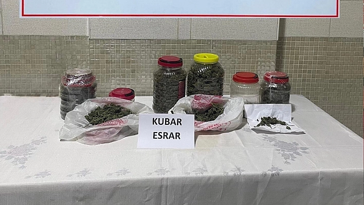 Alınan arama kararına istinaden şüphelilere ait ev ve eklentilerde, “Resim” isimli uyuşturucu madde arama köpeğinin katılımıyla arama yapıldı. Yapılan aramalarda 4 kilo 972 gram kubar esrar ile 4 gram toz esrar olduğu değerlendirilen uyuşturucu madde ele geçirildi.