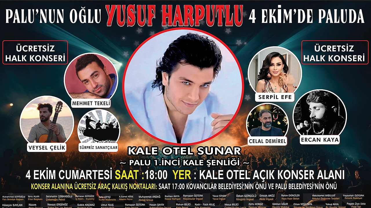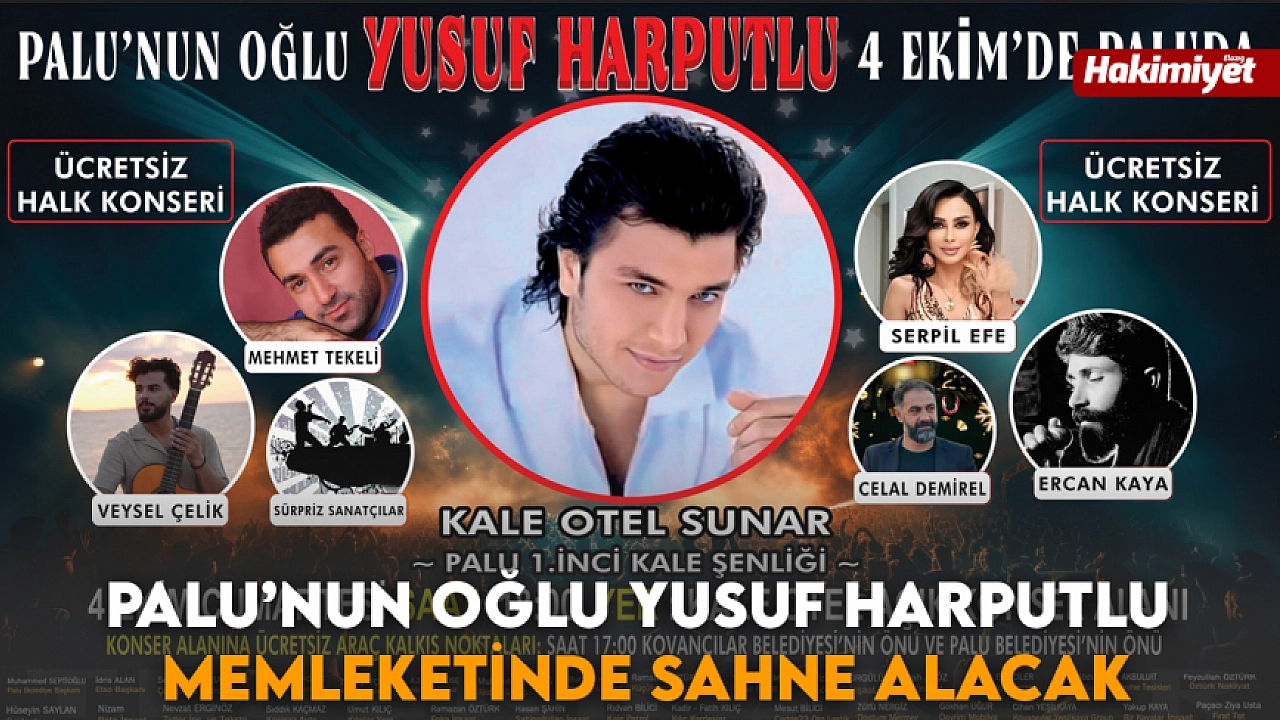 Sanatçı Yusuf Harputlu, sevilen türküleri ve sahne performansı ile hemşehrilerine unutulmaz bir akşam yaşatacak.