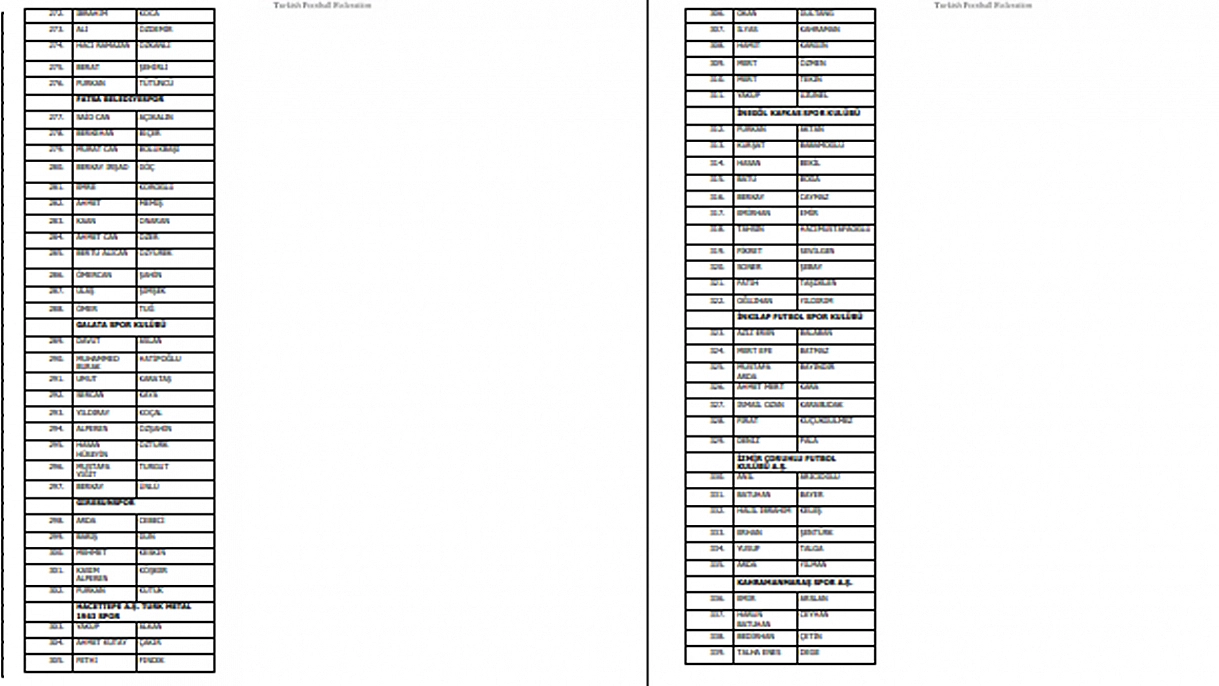 PFDK’ya Sevk Edilen Futbolcuların Listesi