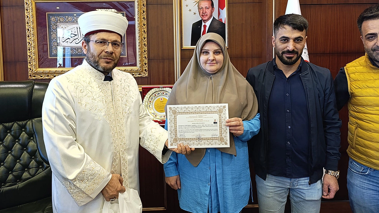 Tören sonunda İl Müftüsü Orhan İmamoğlu, Eda Hanım’a ihtida belgesi, Kur’an-ı Kerim ve çeşitli dini yayınlar takdim etti. Program, yapılan dua ve hatıra fotoğrafı çekimiyle sona erdi.