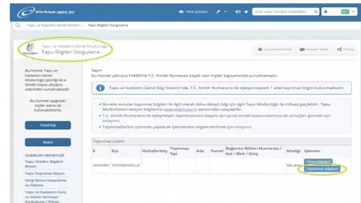 Taşınmaz numarasına, e-Devlet üzerinden sunulan “Tapu Bilgileri Sorgulama” hizmeti aracılığıyla ulaşılabilecek. Taşınmaz listesinde ilgili mülk seçildikten sonra “Taşınmaz Bilgileri” bölümünde bu bilgi görüntülenebilecek. Ayrıca yeni tip tapu senetlerinde de taşınmaz numarası bilgisi yer alıyor.