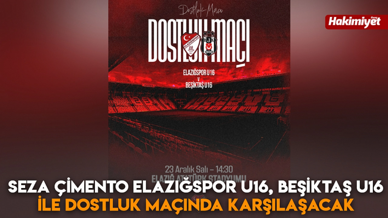 Seza Çimento Elazığspor U16, 23 Aralık'ta Elazığ Atatürk Stadyumu'nda Beşiktaş U16 ile dostluk maçında karşılaşacak.