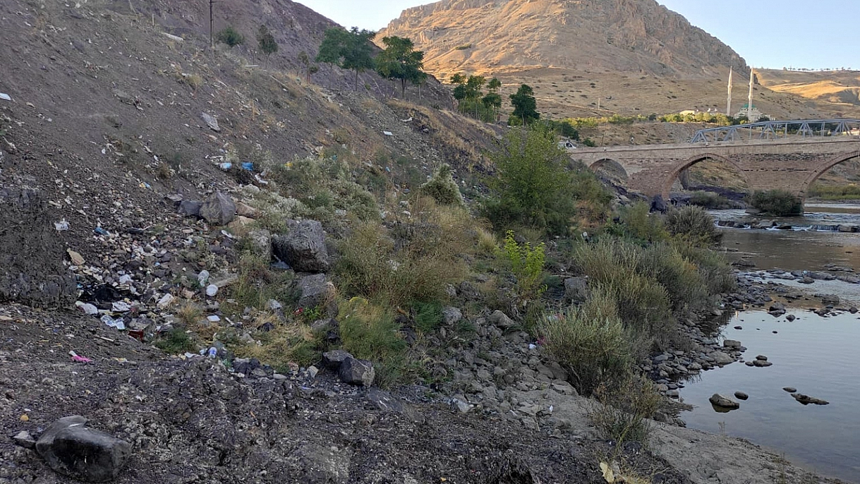 Tarihi Palu Köprüsü çöpler içinde kaldı