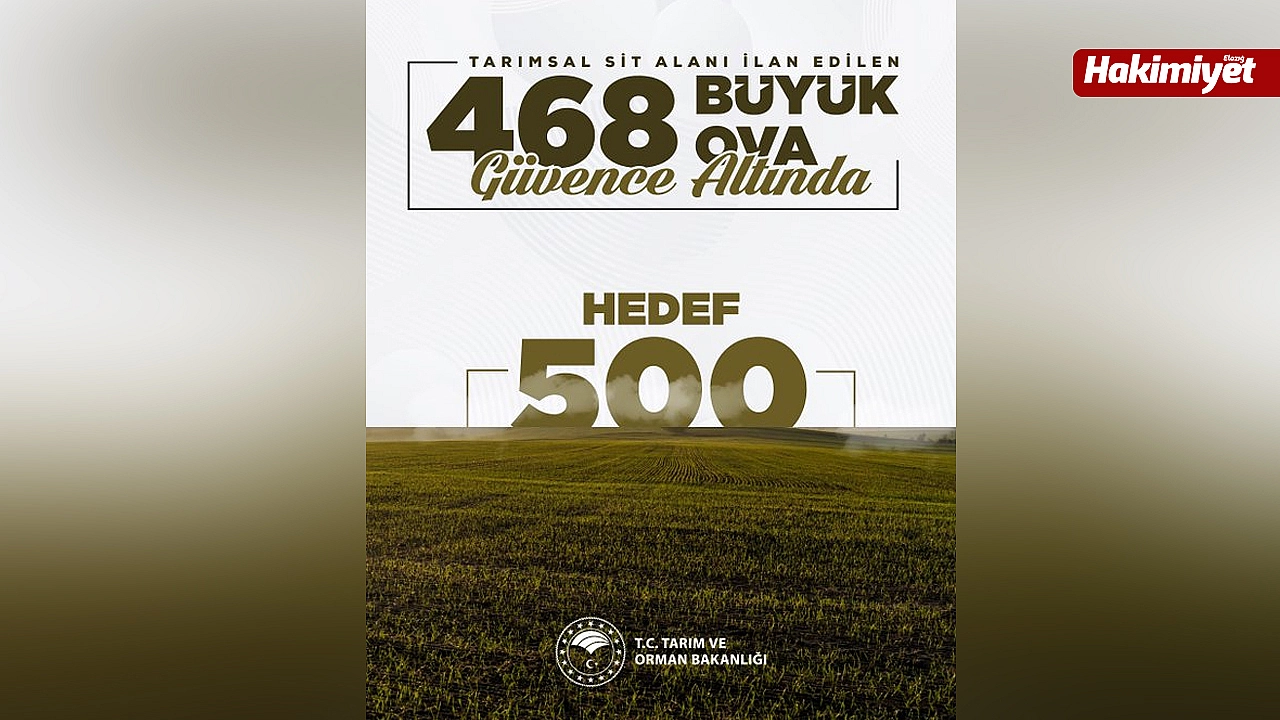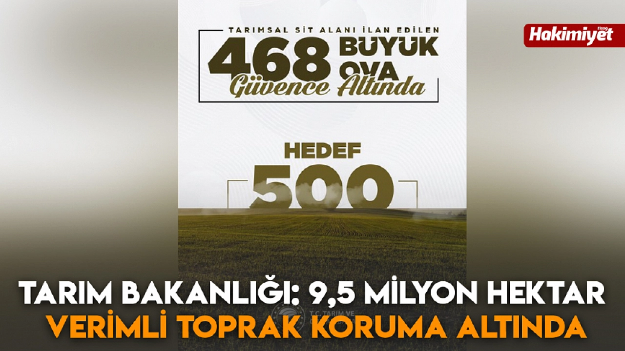 Tarım ve Orman Bakanlığı, 468 Büyük Ova Koruma Alanı ile 9,5 milyon hektarlık verimli tarım arazisini güvence altına aldığını açıkladı. Hedef, bu sayıyı 500 alana çıkarmak.