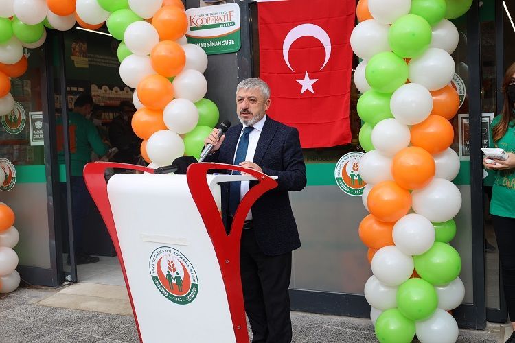 Türkiye Tarım Kredi Kooperatifleri Genel Müdür Yardımcısı Davut Arpa, açılışta yaptığı konuşmada 566. mağazanın hayırlı olması temennisinde bulunarak; “Bugün burada 566. mağazamızı açıyoruz. Türkiye Tarım Kredi Kooperatifleri bir çiftçi kuruluşudur. 17 Bölge Birliği, 1615 Kooperatifi, 200 Hizmet Bürosu, 19 İştiraki ile çiftçimizin hizmetinde olan bir kooperatif yapılanmasıdır. Tüm dünya örneklerinde olduğu gibi Türkiye’de de Tarım Kredi Kooperatifleri bir elini çiftçiye uzatırken, diğer taraftan da tüketicinin yanında yer alıyor. Üretici ile tüketici arasında köprü olma noktasında yapılanmasını hızlı bir şekilde geliştirerek dönüştürüyor.” dedi.