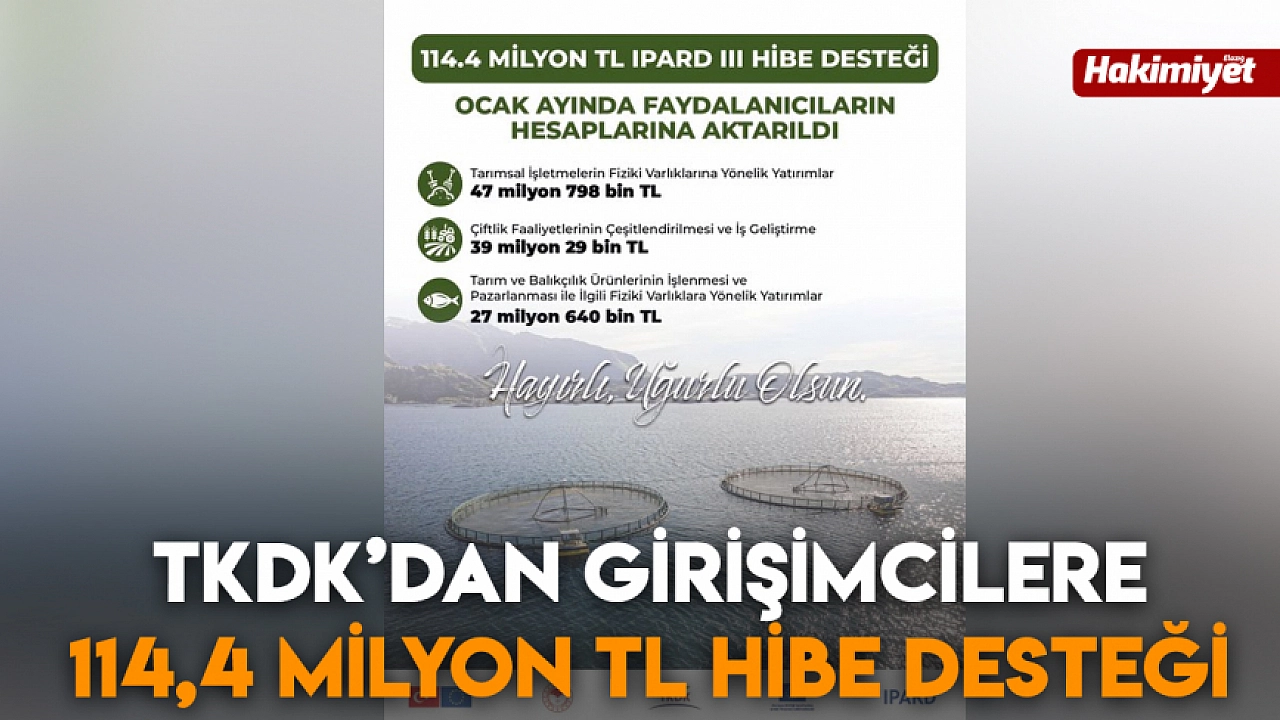 Tarım ve Kırsal Kalkınmayı Destekleme Kurumu (TKDK), IPARD III Programı kapsamında Ocak ayında girişimcilere toplam 114,4 milyon TL hibe desteği sağladı.