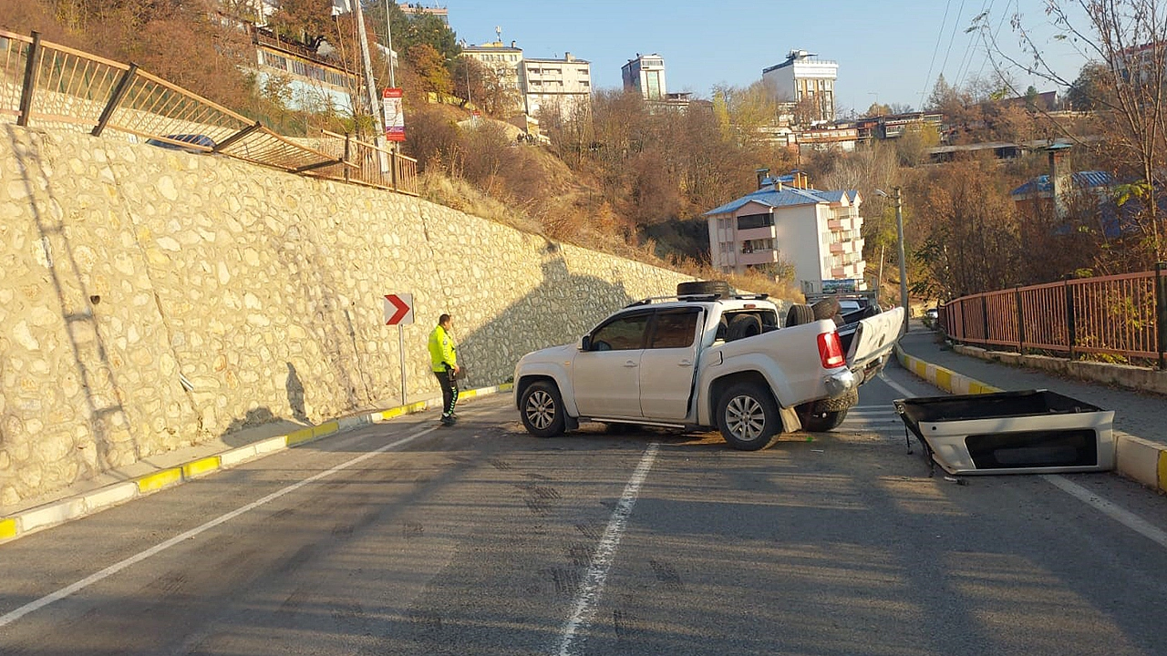 Tunceli’de sürücüsünün direksiyon hâkimiyetini kaybettiği kamyonet, yaklaşık 7 metre yükseklikten caddeye düşerek kazaya neden oldu. Olay, Ovacık Yolu Sokak’ta meydana geldi.