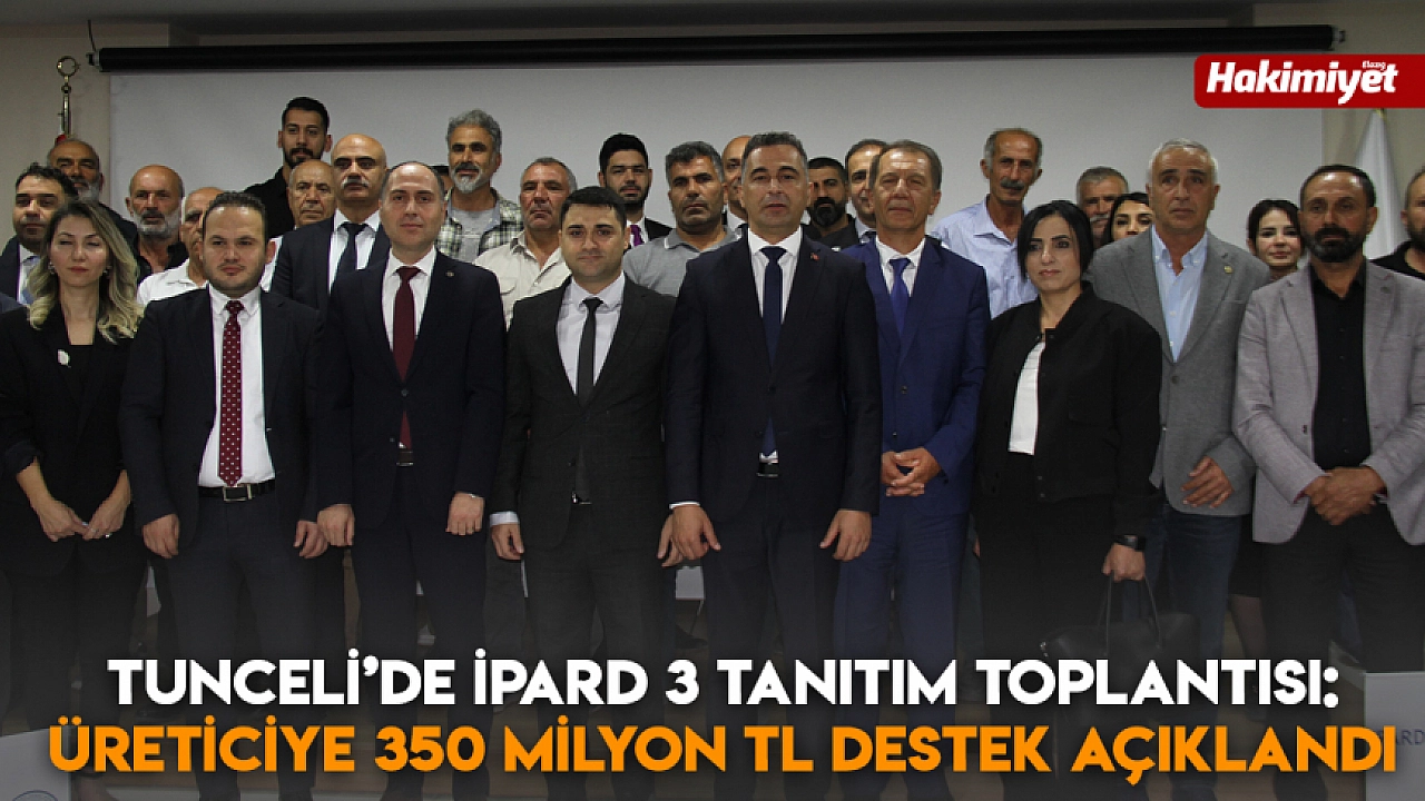 Tunceli'de düzenlenen IPARD 3 Programı Tanıtım ve Bilgilendirme Toplantısı'nda, çiftçilere, girişimcilere ve hayvancılıkla uğraşanlara sağlanan devlet destekleri hakkında bilgi verildi. Toplantıda, son üç yılda bitkisel, hayvansal ve su ürünleri üretimine toplam 350 milyon 474 bin 50 TL destek ödemesi yapıldığı açıklandı.