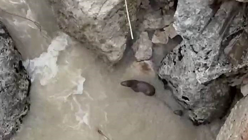 Tunceli'nin Çemişgezek ilçesinde bulunan Tağar Çayında, nesli tükenme tehlikesi altında bulunan su samurları görüntülendi.