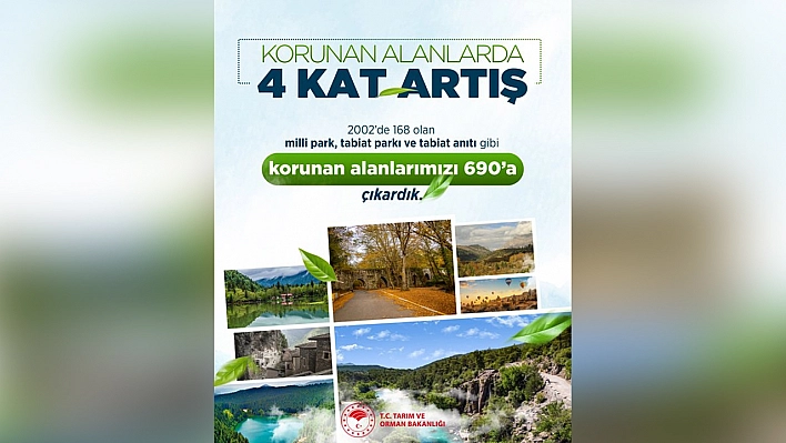 Tarım ve Orman Bakanlığı, 2002 yılında 168 olan korunan alan sayısını 4 kat artırarak 690'a çıkardıklarını duyurdu.