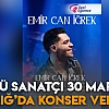 Ünlü sanatçı Emir Can İğrek, 30 Mart'ta Elazığlı hayranlarıyla buluşacak. Özellikle gençler tarafından büyük ilgi gören başarılı sanatçı, Elazığ'da unutulmaz bir konser vermeye hazırlanıyor.