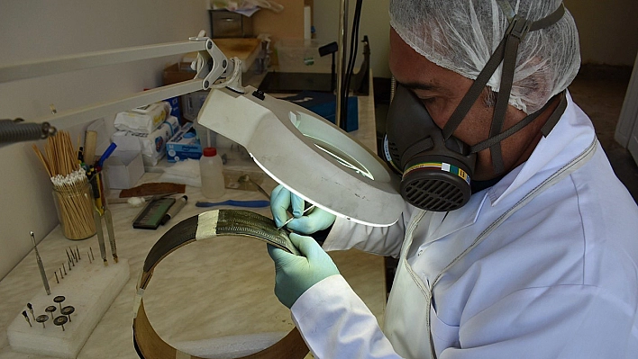Elazığ'da Arkeoloji ve Etnografya Müzesinde bulunan Urartu dönemine ait metal eserler, fiziki ve kimyasal analizlere tabi tutulup çağdaş konservasyon teknikleriyle onarılarak geleceğe taşınıyor.
