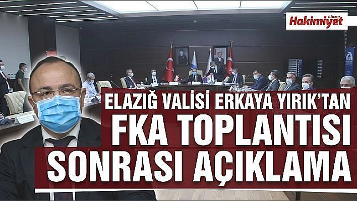 Elazığ başkanlığındaki FKA'nın ilk toplantısını gerçekleştirdiklerini belirten Vali Erkaya Yırık, “Toplantımızda 2021 yılının çalışma programını ve sonuç odaklı projelerin değerlendirilmesi 2021 yılı itibari ile planlanan faaliyetler ve yine 2020 yılında bu yıl itibari ile fizibilite desteği programı kapsamında projeleri değerlendirme sonuçları ve aynı zamanda güdümlü proje önerileri bölgemize hizmet edecek projelerinin hedeflenmesi amaçlanıyor. Bugün itibari ile 2020 yılı ara faaliyet raporlarının değerlendirilmesi arkadaşlarımızla birlikte mütalaa edeceğimiz konulardan bir tanesidir"dedi.