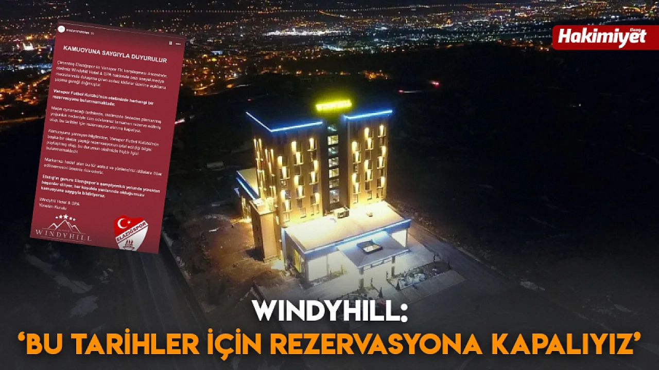 Çimentaş Elazığspor ile Vanspor FK arasında oynanacak kritik mücadele öncesinde, sosyal medyada Windyhill Hotel & SPA hakkında dolaşıma giren iddialara ilişkin otel yönetimi yazılı bir açıklama yaptı.